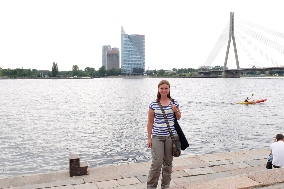 Podczas spaceru bulwarem nad Dźwiną spotykamy kolegę, który z powodu skręconej nogi Rygę zwiedzał z pozycji kajaka.