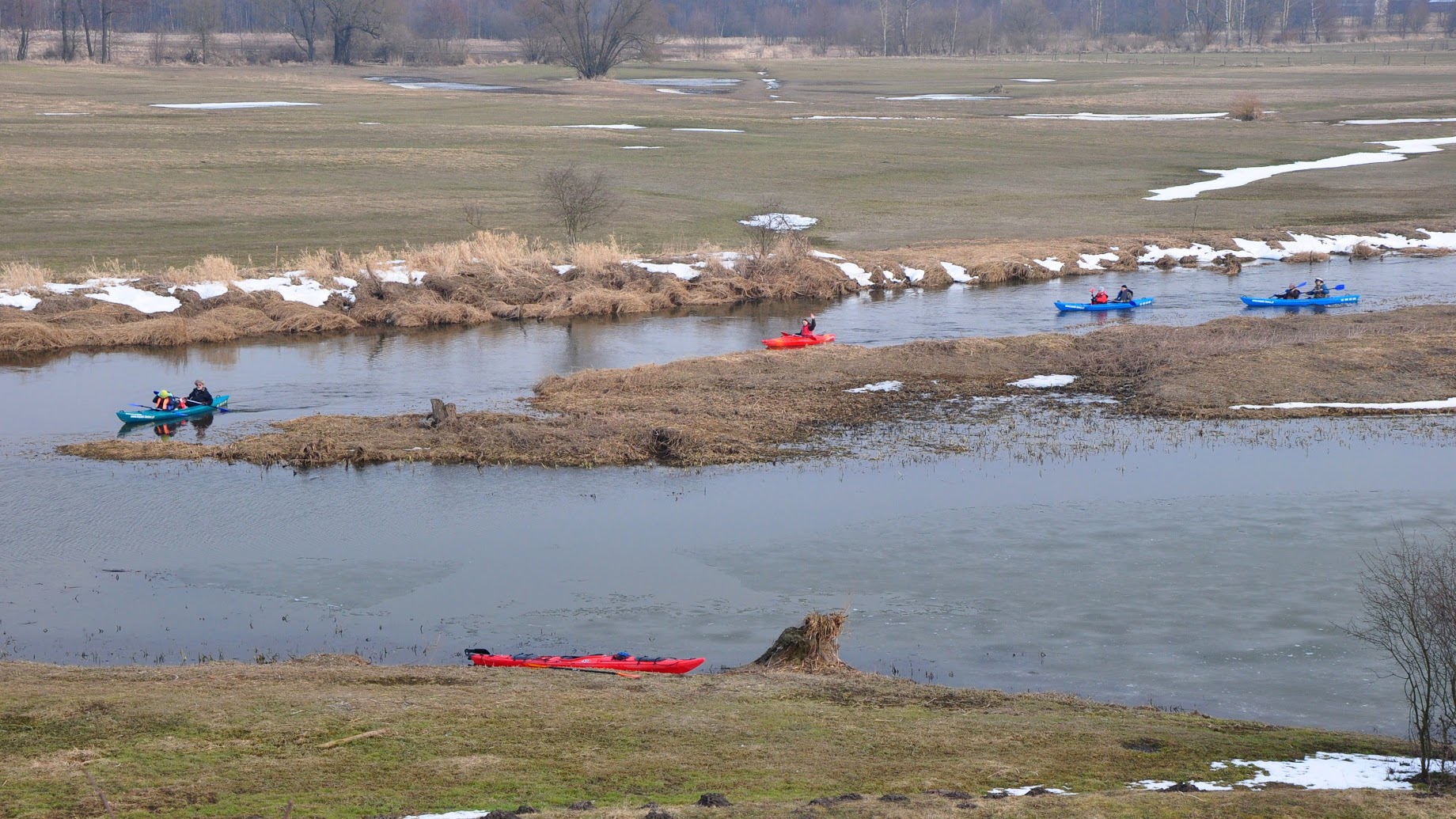 I wreszcie - pierwsze chwile na wodzie. Słońca nie ma, ale duuużo cieplej niż w Lublinie. Rzeka bardzo spokojna.